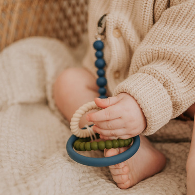 The best part about these teethers? You get 3 rings in 1 design! Their hollow design makes them easy for little hands to grab, and their smooth and textured surfaces provide added relief for your baby's gums. Seeing as they are pure silicone, they are also very easy to clean. Simply wash with mild soap and water or throw them on the top shelf of the dishwasher. You can also put these in the freezer for added relief when those painful teeth start poking through. Little Cheeks teethers are made using 100% food grade silicone. They are non-toxic, which means no BPA, lead, PVC or phthalates. SAFETY CERTIFIED (CCPSA, ASTM F963-17, EN71 Parts 1, 2, 3).