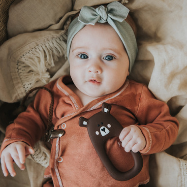 Little Cheeks Bear Silicone Teether Brown