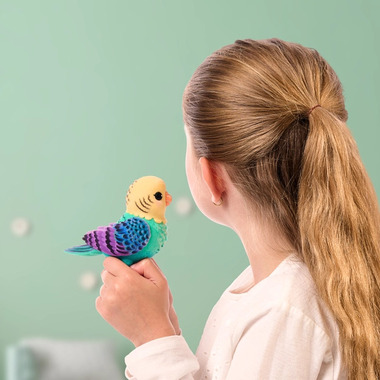 My Really Real Bird is so interactive - your bird's beak really moves and they love whistling sweet tunes and repeating back what you say! Record your voice and they will repeat it back. Sing to your bird and your bird will whistle back to you in tune! With over 20 sounds and reactions, petting your bird will trigger cute bird sounds. Place Indie and Rosie in their bird cage and take them anywhere!