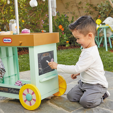 Adding product to your cart. Brew up real fun with Little Tikes realistic 2-in-1 Café Cart. Inspired by a real traveling café and street food cart, this toy cooking playset comes with realistic accessories to make playtime creative and children and kids’ imaginations soar. Multiple kids can play at once and take turns making coffee, tea and pretending they are a barista or a customer enjoying the delicious treats.