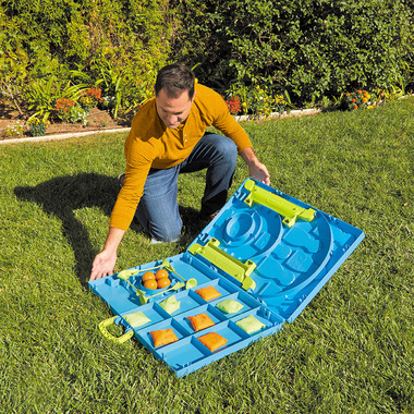 The 5-in-1 Cornhole Game Set has everything you need to play 5 different games: Cornhole, Bowling, Tic Tac Toe, Skeeball, & Lawn Darts. And once you're done having fun, pack up all the included accessories in the self contained carry case for easy storage.
