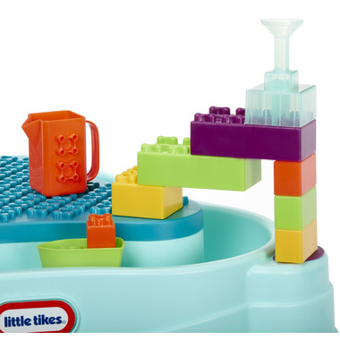 This dynamic playset includes removable legs for optional fun on the floor, a must-have set for grow-with-me-play. Enjoy easy cleanup and storage with the removable center building surface and additional mesh storage bag.  The Little Tikes Build & Splash Water Table encourages the development of fine motor skills while using imagination to build and play.