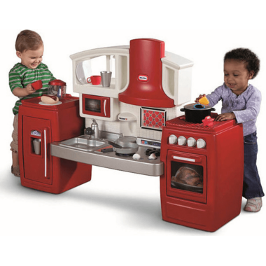 The Little Tikes Cook 'n Grow Kitchen playset has two stages to grow with your child from toddler to preschooler. You will have an inspiring little chef with this realistic kid's kitchen playset that grows with your child. When this Little Tikes kitchen is opened it is the perfect height for toddlers. When the kitchen is compacted it is now the perfect size for your preschooler to cook your dinner. Ages 18+ months.