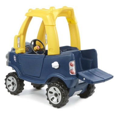 Cozy Truck combines the durability of Little Tikes and the fun of their Cozy Coupe. This truck-styled riding toy is ideal for toddlers and preschoolers. The foot-to-floor format is easy to start and stop. Use it indoors or out. Kids will love the working door and tailgate for imaginative play. Built in grip handle on roof for parent transportation. Includes floor board to protect little ones' feet. Removable floor board for child powered imaginative play. Weight limit up to 50 lbs.