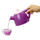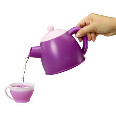 • COLOR-CHANGING CUPS. Pour cold water in the teacups for a color change that mimics brewing tea.