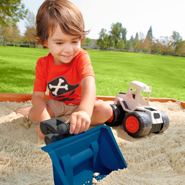 This front loader is a toy bulldozer and shovel in one! Kids will find an endless number of ways to dig, push, lift and pile. Toy trucks and construction toys promote hands-on, active play which is essential to balanced childhood development. Ages 2+.