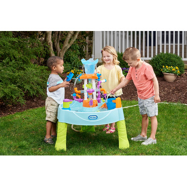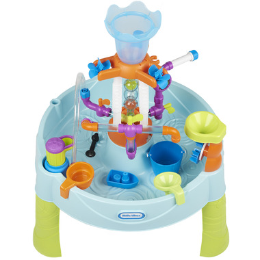 Looking for an amazing water table that's sure to be a splash hit for your kids? Try the Little Tikes Flowin' Fun Water Table, with its multiple play stations (up to three kids can play at once) and 13 interchangeable pipes, fittings, and faucets. Kids can create their own wacky waterworks, watch water cascade down it, and then mix things up. Try connecting the Little Tikes Flowin' Fun Water Table to your garden hose, or pouring water into the central tower, to make a real splash. But the fun doesn't stop there, this Water Table works both with and without a garden hose attached.