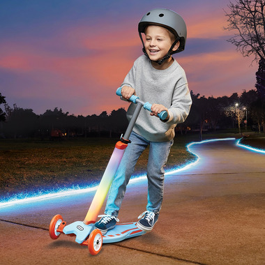 Riding is more fun when there's a light show. The Little Tikes Glow Stick Scooter offers fun rides for beginners who want to learn how to scoot and enjoy their play time. The 3-wheel scooter features a colorful glowstick column that lights up as kids ride faster and rewards them with a special light show when they reach maximum speed. This 3-wheeled lean-to-turn scooter helps kids develop their motor skills, and the lightweight frame makes it easy to carry and store. Its built to last for many years, and the adjustable handlebar lets kids keep riding as they continue to grow.