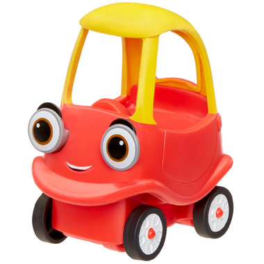 A mini version of the classic and iconic Cozy Coupe ride-on vehicle and featured in the Let's Go Cozy Coupe animated series. Kids will want to play with this mini vehicle wherever they are and wherever they go. It's the perfect size for small hands and designed to be easy to hold and play with. Take the car for a drive on the floor or tabletop and push down to hear a squeak. This is not a Ride-On toy.