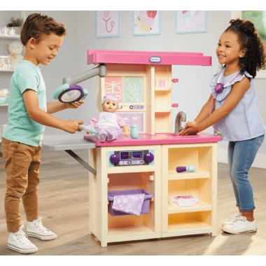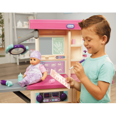 The Little Tikes My First Baby Care Center allows kids to pretend they’re a doctor, nurse, or new parent. Interactive features like an adjustable overhead exam light, folding exam table, X-ray station and more add to exciting role play.
