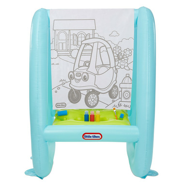 The Little Tikes 3-in-1 Paint & Play Backyard Easel offers kids 3 ways to play! This inflatable art station has a printed scene to color in with paint, a clear panel to trace over objects and people behind the screen, and an opaque panel to paint your own creation. It includes everything you need with 3 washable paint colors, 3 accessories (brush, roller, sponge), and stakes for the ground. Its easy clean surface will keep young artists making many new creations. Adult assembly required. Recommended for boys and girls 3+ years.