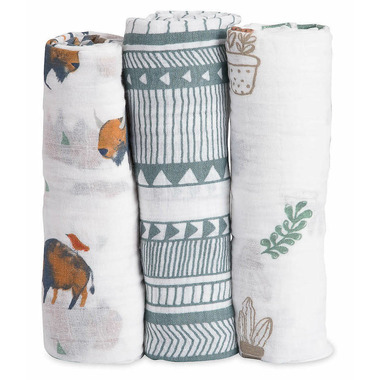Little Unicorn Cotton Muslin Swaddle 3 Pack Bison Set