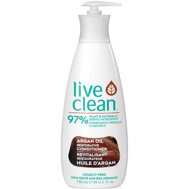 Live Clean Argan Oil Restorative Conditioner is enriched with 100% pure Argan Oil for enhanced long term conditioning shine and UV protection.  It restores hairs natural shine and luster with added certified organic Grape Seed and Olive Oils.