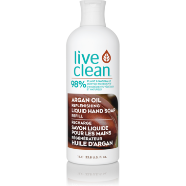 Live Clean Argan Oil Hydrating Liquid Hand Soap features 100% pure Argan Oil to nourish and replenish the skin for improved texture and tone, while certified organic botanicals of Grape Seed and Olive Leaf Extracts help to protect the skin’s moisture barrier. Eco-friendly and convenient. 1 L Soap Refill can refill the 500ml Live Clean hand soap dispensers twice at an affordable price.