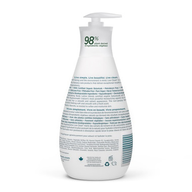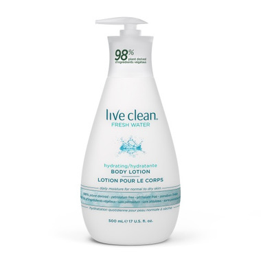 Live Clean Fresh Water Body Lotion blends certified organic botanicals of Rosemary and Chamomile with