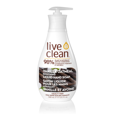 Live Clean Vanilla Oatmeal Soothing Liquid Hand Soap is a luxurious formula that will gently cleanse and deliver superior softening and moisturizing.  It is the perfect blend of Vitamin E Panthenol and certified organic botanicals of Vanilla and Chamomile combined with Oatmeal.