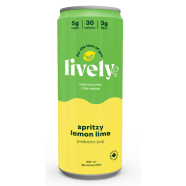 - Lively Spritzy Lime Prebiotic Pop, for the love of gut. Made with apple cider vinegar.