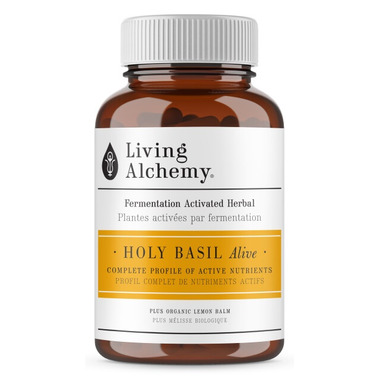 Expertly formulated, Living Alchemy HOLY BASIL Alive is a fermented whole herb solution to calm the mind, brighten mood, promote relaxation, and reduce stress hormones. Using the the finest organic Holy Basil, our unique living culture fermentation process Symbio, a traditional Kefir-Kombucha fermentation with diverse strains of live micro-organisms, combined with organic lemon balm specifically for those feel calm and uplifted. This unique process delivers exceptional absorption, assimilation and effectiveness that is not habit forming.
