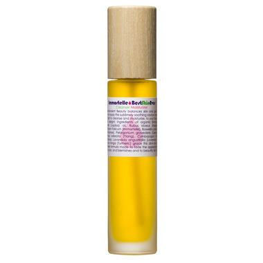 Immortelle Best Skin Ever is a super-fine formula of elegant essences ready to attend to any skin sensitivities, pimple proclivities, blemish festivities, or acne activities, and scars are soothed, smoothed, calmed, and balanced for polished complexion perfection. Immortelle, the shining star of this super skin serum, is one of the top performing oils in the pantheon of botanicals for skincare perfection. This rare gem has potent restorative properties that markedly improve the appearance of skin imperfections. Tonifying Tigray Frankincense and regenerating Geranium combine with the skin soothing sesquiterpenols of Palmarosa, Lavender, and Ylang to make cells sing. These active essences ride into the skin swirled in the opulent emollients and phospholipids of raspberry seed oil and saturated in jojobas ceramides. This all-in-one face and body formula is made to fade the appearance of spots, scars, and blemishes and to beautify skin tone.