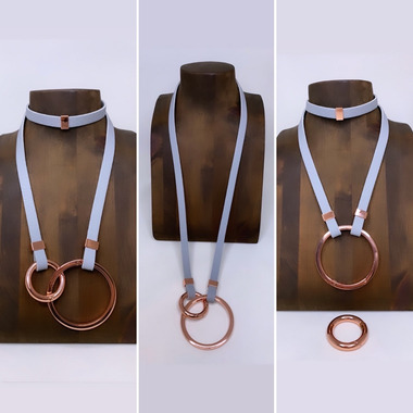 Lofttan Avril Edge Faux Leather Necklace Dove Gray & Rose Gold