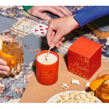 Evening cocktails in Aspen. Spicy nutmeg and uplifting bitter orange, sugary plum and rosy rhubarb, with rich amber and sweet smoke from guaiacwood. Spicy and warm. 7.5 oz. Clean burn for 50 hours. Made in Toronto.