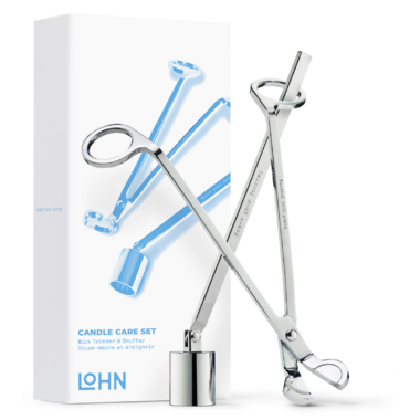 Take care of your candles with LOHN's wick trimmer & snuffer set. Made with stainless steel and embossed with "Scent your journey", these tools will help you prepare your candles for lighting and will safely extinguish them.