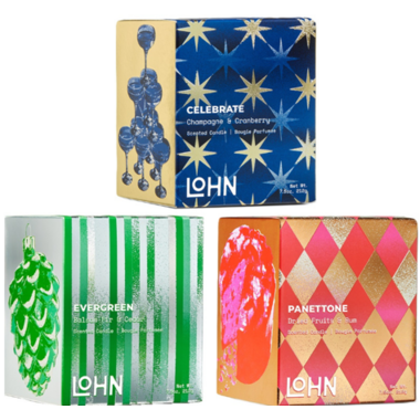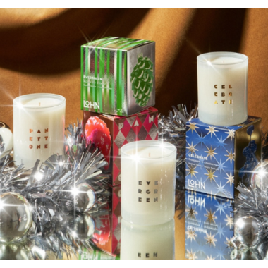 LOHN CELEBRATE Candle Champagne & Cranberry - Sparkling fruity fete. Fruity-floral champagne, juicy black currant, vibrant cranberry, with oaky golden cognac and whispers of sweet vanilla. Fizzy and tart.