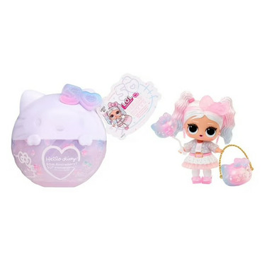 Unbox 7 shimmery, detailed surprises that match Hello Kitty's 50th anniversary celebration. Celebrate in style with 7 surprises to unbox, including: (1) 1 L.O.L. Surprise Loves Hello Kitty doll; (2) Outfit; (3) Shoes; (4) Accessory; (5) Accessory; (6) Purse; (7) Sticker.