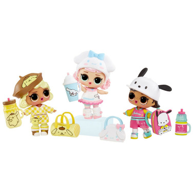 Introducing the limited edition L.O.L Surprise Loves Hello Kitty and Friends Tots! L.O.L Surprise has once again partnered with Hello Kitty to bring you the iconic Hello Kitty and Friends characters remixed with 8 brand new L.O.L Tots! Discover what's inside when you enter the world of Hello Kitty, where the characters are as cute as can be and their friendship makes everything more fun! Meet the 8 limited-edition L.O.L Tots inspired by the most iconic Hello Kitty and Friends like Cinnamoroll, Pochacco, Keroppi, and more. Experience the most adorable unboxing with the uniquely designed Hello Kitty shaped L.O.L ball! Each character comes with oh-so-sweet surprises including the most darling fashions and accessories, inspired by the signature colours and designs of Hello Kitty and Friends! Collect all 8 and mix and match fashions and accessories to create new outfits for all your L.O.L. Tot BFFs. UNBOX 7 surprises, including: (1) collectible doll, (2) outfit (3) headpiece, (4) bottle, (5) purse (6) shoes, (7) sticker. With L.O.L. Surprise! Hello Kitty and Friends, you can join the world of Hello Kitty and celebrate with all her friends! Collect all 8 L.O.L Surprise!