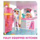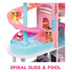 • 85+ SURPRISES & FULLY FURNISHED including a fully equipped kitchen cabinet, a fridge stocked with tons of food accessories, transforming furniture, a vanity table, a loft bed, bathtub, a spiral slide, and more!