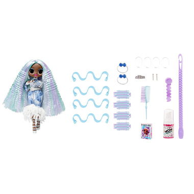 - INCLUDES: 1 LOL Surprise OMG Fashion Show Hair Edition doll, fashion outfit, earrings, diamond ring cuff, shoes, glam shades, jeweled choker necklace, belt, clear hair elastics, crimp barrettes, crystal hair ballie, gem hair clip, beach wave hair curler, combination brush/comb, W.O.W. Magic Mousse, and magazine