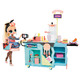 • UNBOX 45+ SURPRISES including an exclusive doll, an extendable playset, a drink dispenser, an iPad register, a menu, multiple cooking and kitchen accessories, food accessories, a fashion outfit, a hairbrush, and a doll stand in an all-new play experience.
