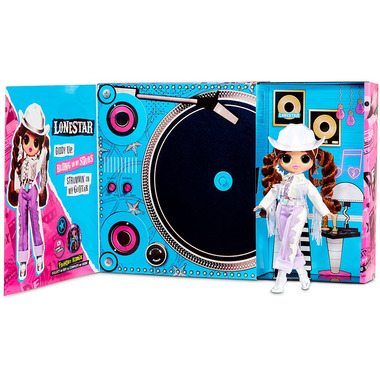 Unbox L.O.L. Surprise! O.M.G. Remix fashion doll – Lonestar – with 25 surprises. Lonestar is just a country gurl from her cowgirl hat to her spurs, and she has stunning features, beautiful, styled hair, and her own cowgirl style. She's the big sister to fan favorite L.O.L. Surprise! character, Line Dancer, and she's ready for the ultimate concert – the So Extra Tour. But she needs your help, because everything got remixed! Unbox the full-size record and play it on her record player packaging. It really plays Lonestar's country piece of a surprise song. Then, get her ready for the show. Lonestar includes 2 complete fashion looks – but her 2nd outfit got remixed! Collect her BFF, Honeylicious, to complete her look just in time to take the stage! She also includes music accessories, so she's ready for the concert. Have her strike a pose to show her off on her included doll stand. She also includes her magazine with the lyrics to her piece of the song. Collect all the lyric sheets from the whole L.O.L. Surprise! Remix line to reveal the whole song. Or, mix & match lyrics to create your own Remix. Each L.O.L. Surprise! O.M.G. Remix includes a fashion doll, 2 fashion looks, 1 pair of shoes, a shoebox, accessories, a hat box, a hair brush, a doll stand, a full-size record, a lyric magazine and a package that really plays music. Collect all 4 L.O.L. Surprise! O.M.G. Remix fashion dolls. Collect the whole L.O.L. Surprise! Remix line to collect all the song lyrics and complete the surprise song.