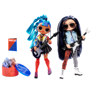 Unbox 2 rockin' L.O.L. Surprise! O.M.G. Remix fashion dolls – Punk Grrrl and Rocker Boi, the first ever L.O.L. Surprise! O.M.G. boy fashion doll! Each fashion doll has rockin' features, styled hair, and their own music-inspired style. Rocker Boi is the big brother to fan favorite character, Rocker. He's got long, rock star hair, distressed denim jacket and Flying V Guitar because he's all about rock music. Punk Grrrl is the sister to fan favorite character, Punk Boi, and she's punk music from head to toe. She has a gorgeous faux hawk, rebellious mixed materials fashion and a guitar, so she's ready to rock it out.
