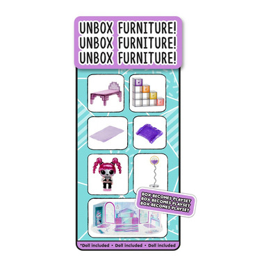 - UNBOX 10+ SURPRISES including a doll, a fold-out playset scene, a light up accessory and all the furniture she needs for a complete hangout session.