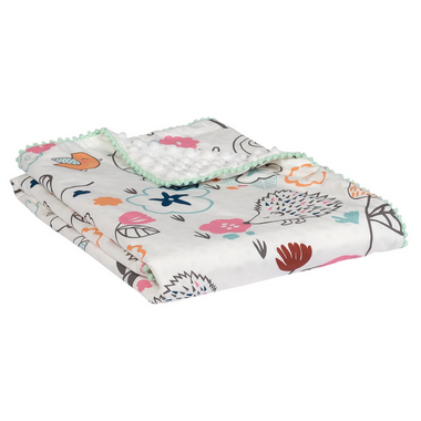 Spring is in full bloom for the smallest critters of the forest floor, as they frolic and play in a springtime wonderland of flowers and leaves swirling in the air. This delightful design can’t help but stir joyful feelings with its colour palette of soft greens and pinks, mixed with dark and light blues.