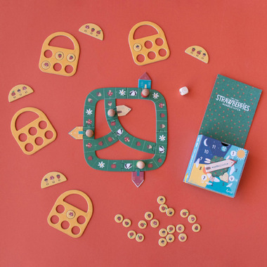 In a quiet corner of the forest, rabbits gather fruit before night falls. But beware! A clever badger is lurking to steal their food. Strawberries is a strategy game: fill your basket before anyone else! A small strategy game to take anywhere, perfect for travel! Made of cardboard and wood. A sustainable and locally produced game.