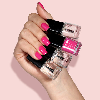 Mini lakur in Summer Fling: Start with base coat. Once the first layer has set, apply 1-2 coats of lakur as needed. Let the polish dry for 10-15 seconds and seal with top coat.