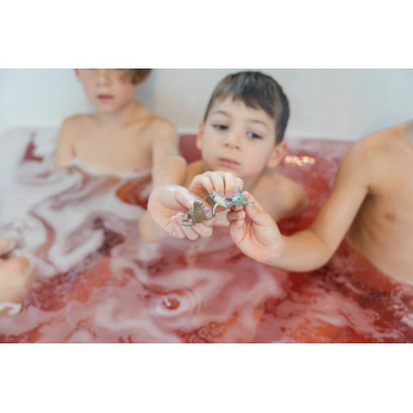 Feed your new bath tub friend with Funky Fish Food and turn your bathtub into the greatest, most colourful ocean in the world. Simply drop some Funky Fish Food into your bath water or water table. As the coloured droplets rise to the top, watch as they create amazing patterns on the surface! Each bag of Funky Fish Food contains a collectible marine animal figurine made by our pals at Safari Ltd.