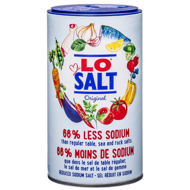LoSalt is made with 66% less sodium than regular table, sea and rock salts.
