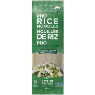 Organic Traditional Pho Rice Noodles are blissfully delicious thin-style noodles used in Vietnamese and Chinese cuisine. Made with organic white rice, they don't even have to be cooked - just soak in boiling water for 4 minutes until tender.