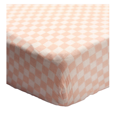 Loulou Lollipop Muslin Fitted Crib Sheet Pink Checkerboard