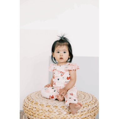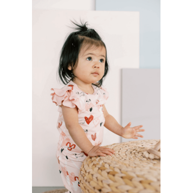 Made from Loulou Lollipop’s signature blend of ultra-soft and sustainable fabric using TENCEL™ Lyocell and organic cotton, this baby girl's romper is as cute as it is comfortable. It features a ruffled shoulder with snaps opening on the back and bottom for easy dressing. This stylish romper is made for movers and shakers!
