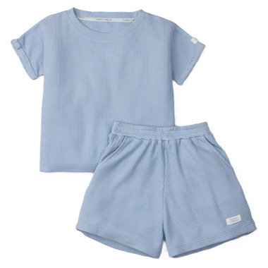 Loulou Lollipop Waffle Short Sleeve Top and Shorts Set Blue Fog