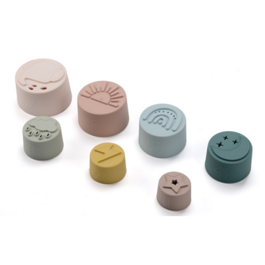 Loulou Lollipop Silicone nesting and stacking cups are the must have sensory and educational toys for all ages. Adorned with fun design on each cup, this set of 7 cups is made of 100% food grade silicone that is soft and great to have from playtime to bath time! For 10 months and up.