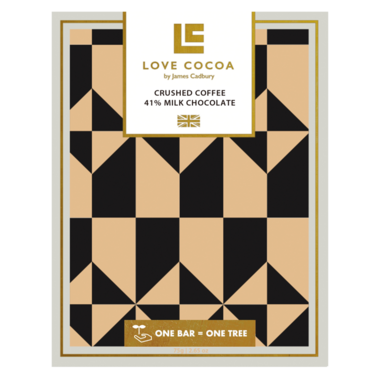 Crushed coffee 41% milk chocolate. One Bar = One Tree.