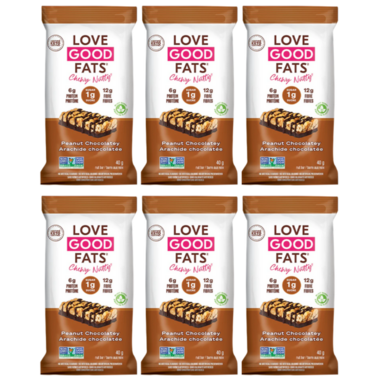 - 6x Love Good Fats Chewy Nutty Peanut Chocolatey Bar, 40g