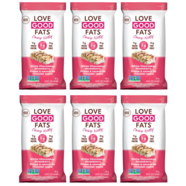 - 6x Love Good Fats Chewy Nutty White Chocolatey Strawberry, 40g