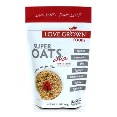 Love Grown Foods Super Oats Nuts & Seeds is not your traditional oatmeal. Made with grains oats, chia seeds, quinoa flakes, amaranth flakes, almonds, walnuts, pumpkin seeds and flaxseed, this hot cereal blends pack a SUPER nutritional punch and cook in 3 minutes. Best of all, Super Oats are unsweetened so you can customize as you like.