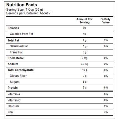 May Contain: Milk, Soy, Wheat, Tree nuts, Sesame seeds, Oats, Barley, Rye.